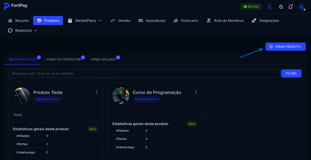 Agora que você já está com o seu cadastrado aprovado pela FortPay. Vamos te auxiliar cadastrar o seu produto em nossa Plataforma!